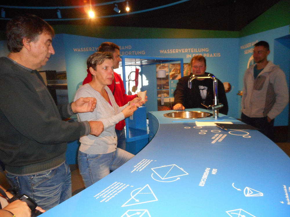 Druhý den návštěvy jsme zavítali do úpravny vody nedaleko obce Kempfeld, která vyrábí pitnou vodu pro přibližně 80 tisíc obyvatel. Prohlédli jsme si nově vzniklé informační centrum o vodě. Společně s dětmi a paní ředitelkou ze základní školy v Kempfeldu jsme si mohli vyzkoušet různé kvízy a pokusy. Podzimní přírodou jsme se prošli na hráz přehrady. Počasí bylo sychravé, jak bývá na podzim, ale my jsme se rádi podívali, odkud čerpají vodu do úpravny. Poté jsme se přesunuli do mateřské školy v Kempfeldu, kterou jsme si prohlédli a vyměnili si materiály pro naši další práci. V odpoledních hodinách jsme navštívili „Muzeum polodrahokamů“ v Idaru-Oberstein. Všichni jsme se dívali s úžasem na nádherné drahokamy a obdivovali těžkou práci dělníků při jejich zpracování. Dozvěděli jsme se mnoho zajímavých informací.
